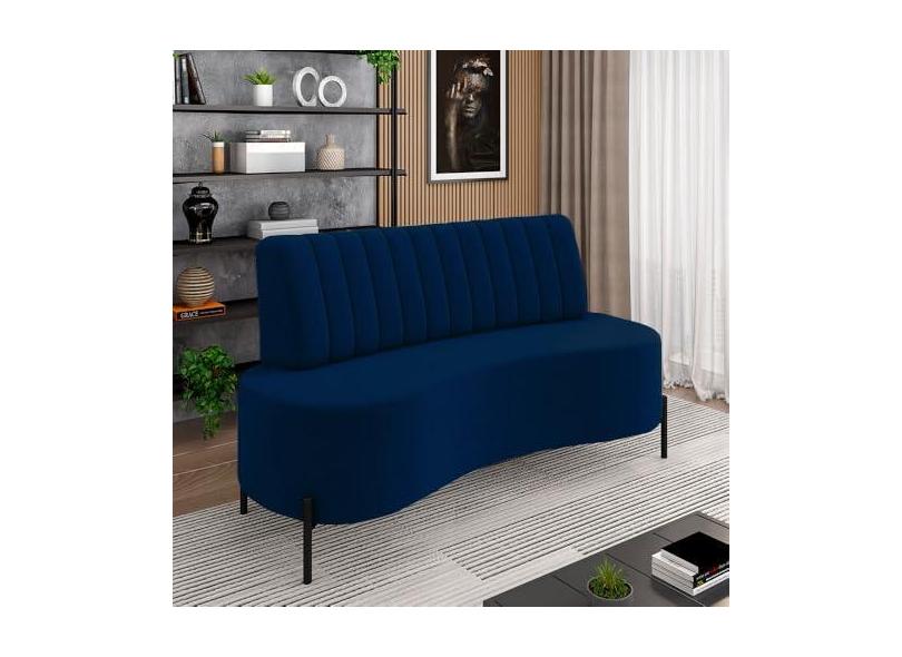 Sofá Living Decorativo 2 Lugares 1,35M Katara Pés de Ferro Veludo Azul G33 - Gran Belo