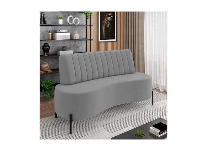 Sofá Living Decorativo 2 Lugares 1,35M Katara Pés de Ferro Veludo Cinza G33 - Gran Belo