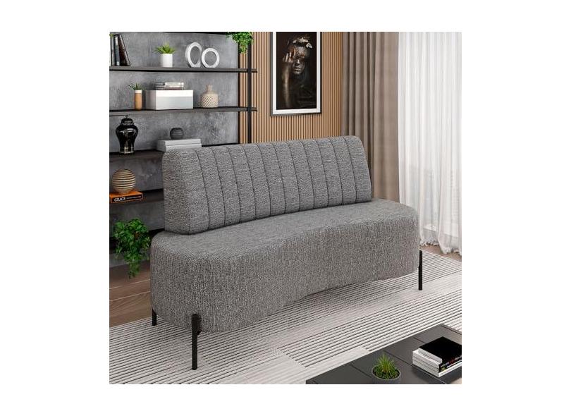 Sofá Living Decorativo 2 Lugares 1,60M Katara Pés de Ferro Linho Grafite G33 - Gran Belo