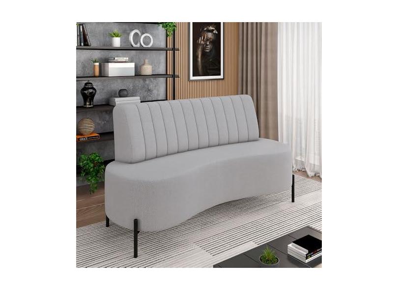 Sofá Living Decorativo 2 Lugares 1,60M Katara Pés de Ferro Linho Rústico Cinza G33 - Gran Belo