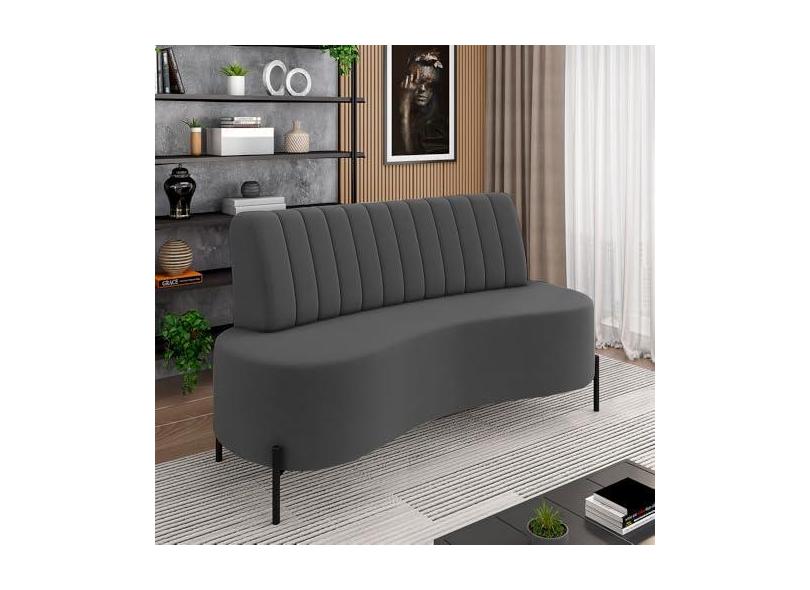 Sofá Living Decorativo 2 Lugares 1,60M Katara Pés de Ferro Veludo Grafite G33 - Gran Belo