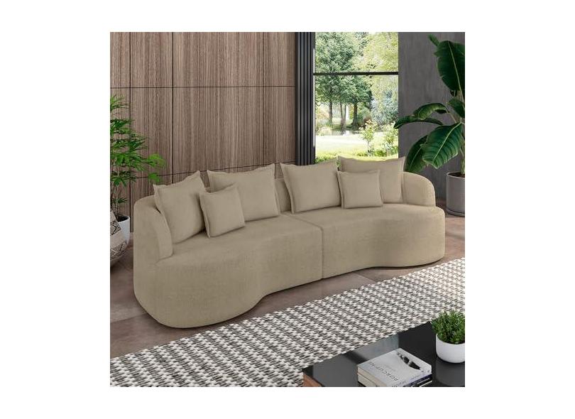 Sofá Living Decorativo Salinas 3 Lugares com Almofadas 230cm Modulado Bouclê Bege G33 - Gran Belo