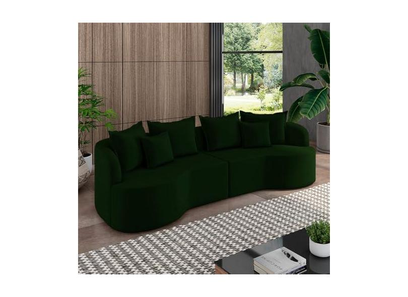 Sofá Living Decorativo Salinas 3 Lugares com Almofadas 230cm Modulado Veludo Verde G33 - Gran Belo