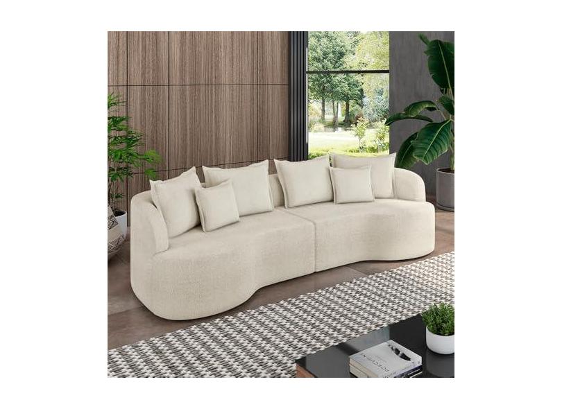 Sofá Living Decorativo Salinas 4 ou mais Lugares com Almofadas 270cm Modulado Bouclê Off White G33 - Gran Belo