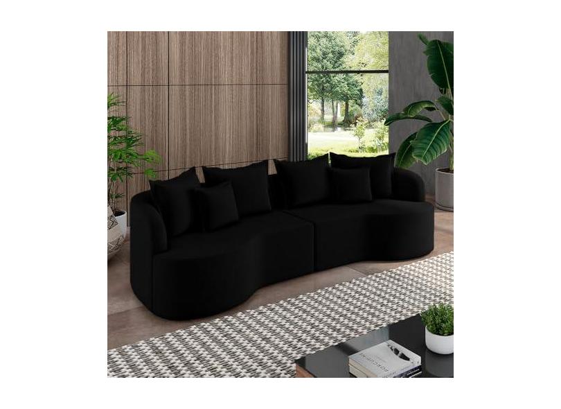 Sofá Living Decorativo Salinas 4 ou mais Lugares com Almofadas 270cm Modulado Veludo Preto G33 - Gran Belo