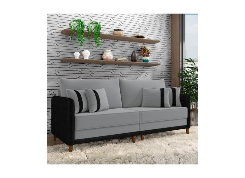 Sofá Living Montecarlo 2 Lugares Bipartido 172cm Pés em Madeira Veludo/PU Cinza/Preto G33 - Gran Belo