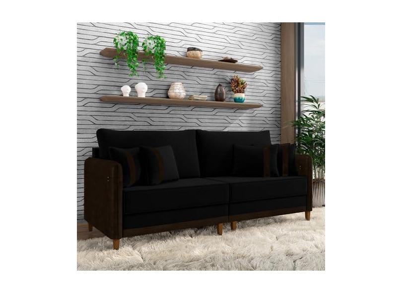 Sofá Living Montecarlo 2 Lugares Bipartido 172cm Pés em Madeira Veludo/PU Preto/Marrom G33 - Gran Belo