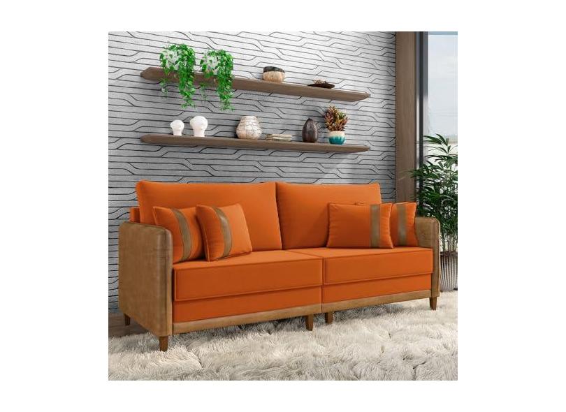 Sofá Living Montecarlo 2 Lugares Bipartido 172cm Pés em Madeira Veludo/PU Terracota/Caramelo G33 - Gran Belo