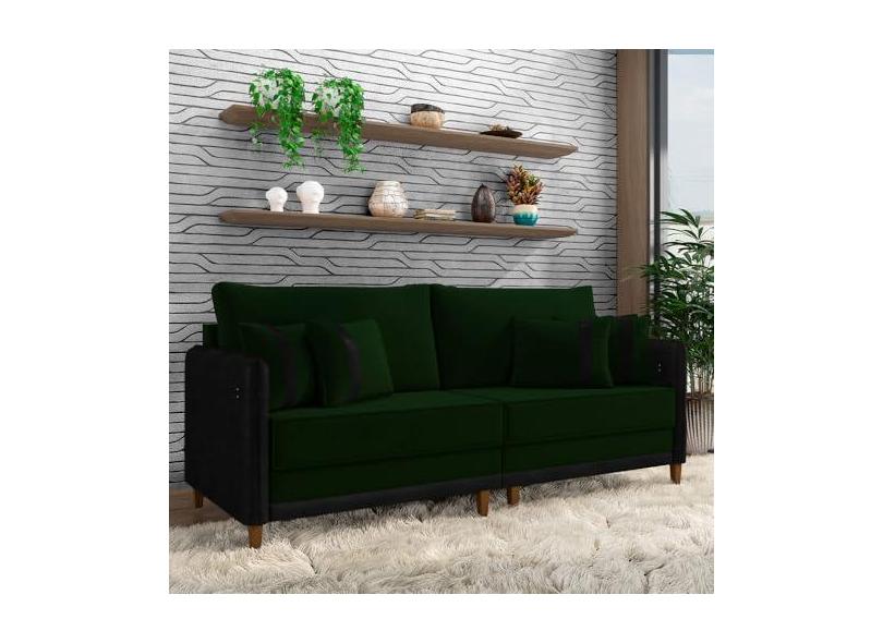 Sofá Living Montecarlo 2 Lugares Bipartido 172cm Pés em Madeira Veludo/PU Verde/Preto G33 - Gran Belo