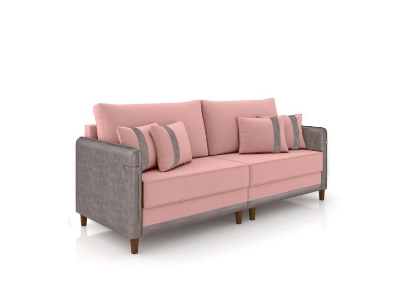 Sofá Living Montecarlo 3 Lugares Bipartido 252cm Pés Em Madeira Veludo Rosê-cinza