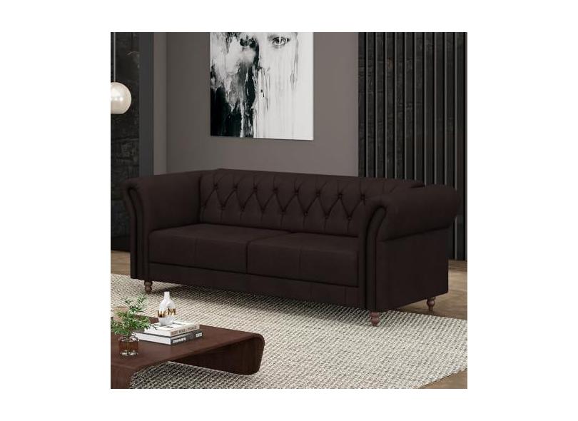 Sofá Living Sala de Estar Stanford Chesterfield 2 Lugares 200cm Pés de Madeira Couro Marrom G58 - Gran Belo