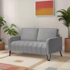 Sofá Living Savana 2 Lugares C/ Pé de Ferro Preto 1,58 Mts Veludo Cinz