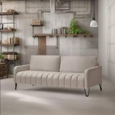 Sofá Living Savana 3 Lugares C/ Pé De Ferro Preto 2,20 Mts Veludo Bege