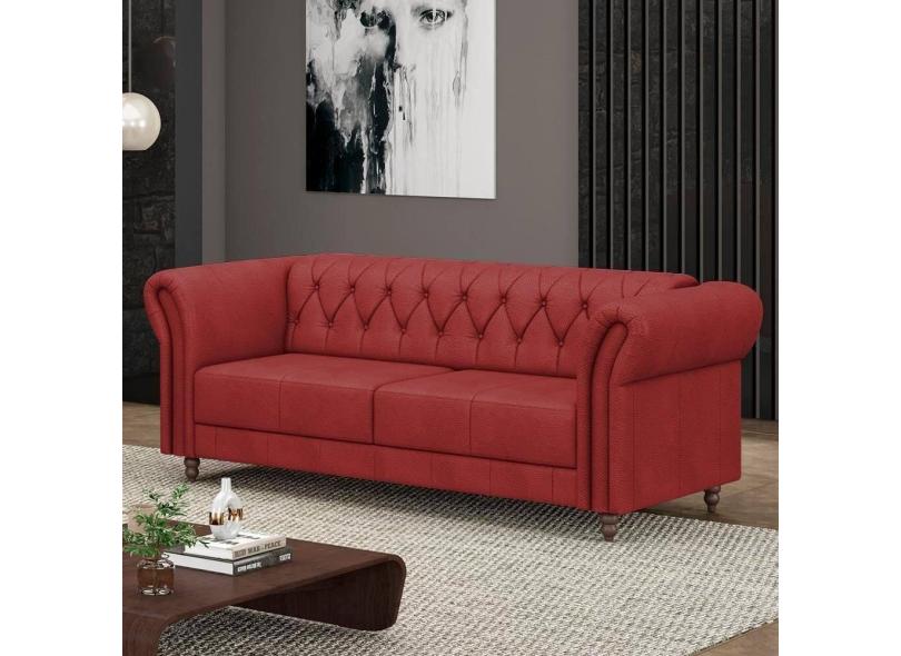 Sofá Living Stanford Chesterfield 2 Lugares 200cm Pés De Madeira Couro Vermelho G58 Gran Belo