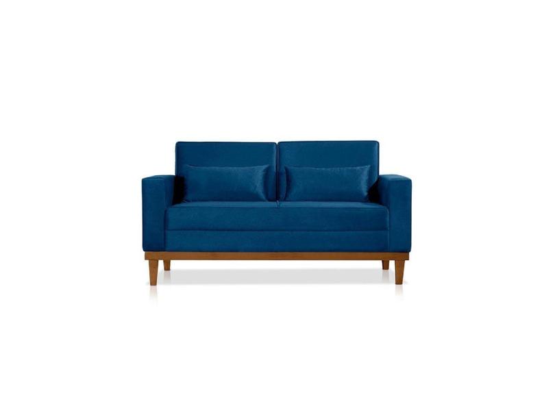 Sofá Living Valência 1,58 Mts C/base Madeira Decor - Veludo Azul
