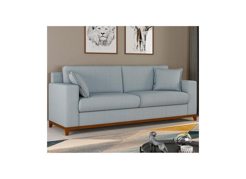 Sofá Living Vintage 3 Lugares 200cm Em Boucle Slim Azul Bebê - Arte Cú