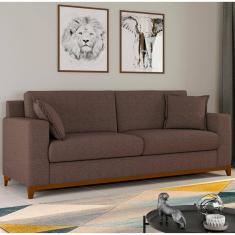 Sofá Living Vintage 3 Lugares 220cm em Linho Slim Avelã