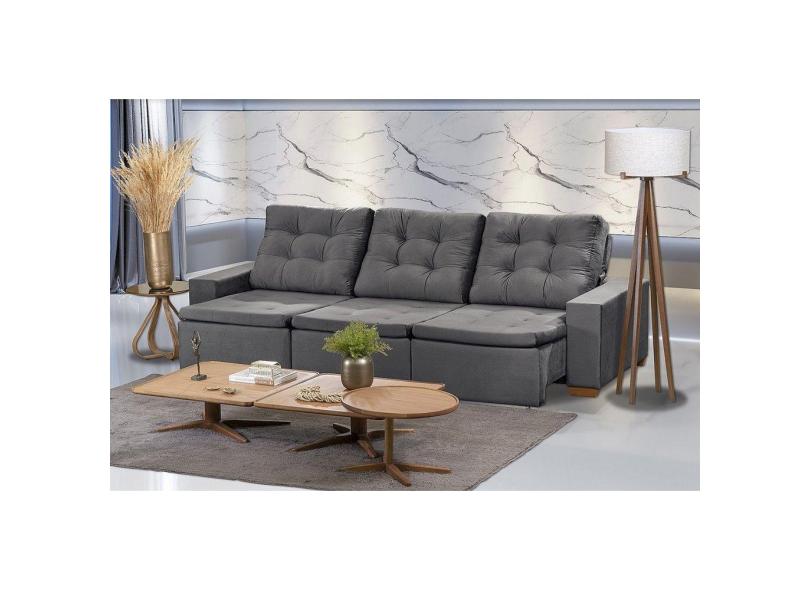 Sofá Modular 6 Lugares 3.05M Retrátil E Reclinável Cinza