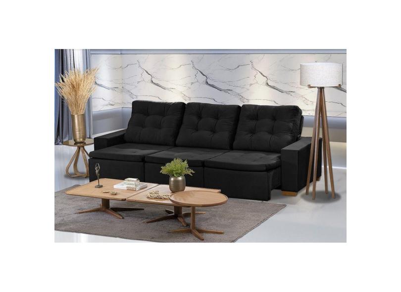 Sofá Modular 6 Lugares 3.05M Retrátil E Reclinável Preto