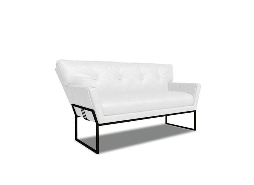 Sofá Namoradeira 2 Lug Industrial Pto Anitta Sintético PU Branco D03 - D'Rossi