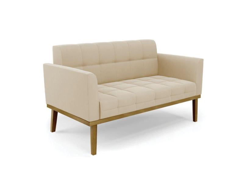 Sofá Namoradeira 2 Lugares Base De Madeira Castanho Elisa Suede D03 - Drossi Cor Bege