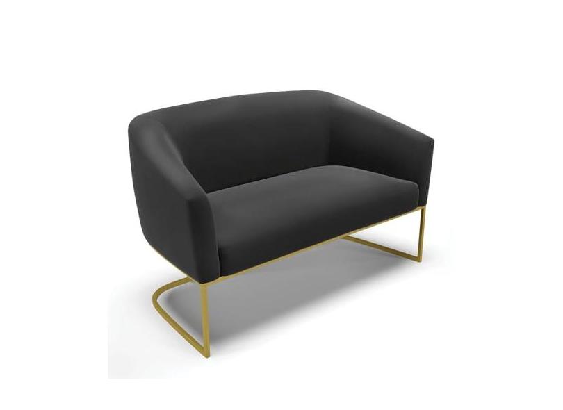 Sofá Namoradeira 2 Lugares Base Industrial Dourado Stella Suede Preto D03 - D'Rossi