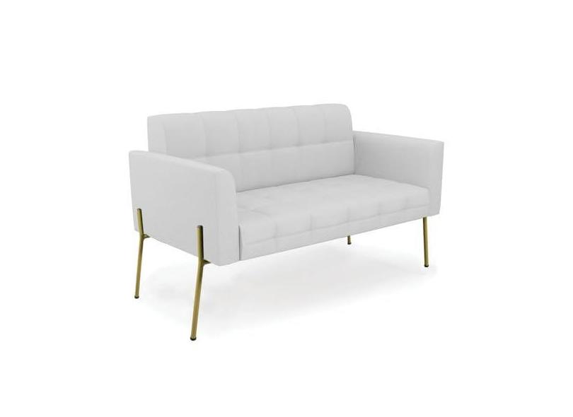 Sofá Namoradeira 2 Lugares Base Pé de Ferro Dourado Elisa Linho Cinza A05 D03 - D'Rossi