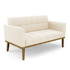 Sofá Namoradeira 2 Lugares de Madeira Castanho Elisa Veludo Bege D03 - D`Rossi