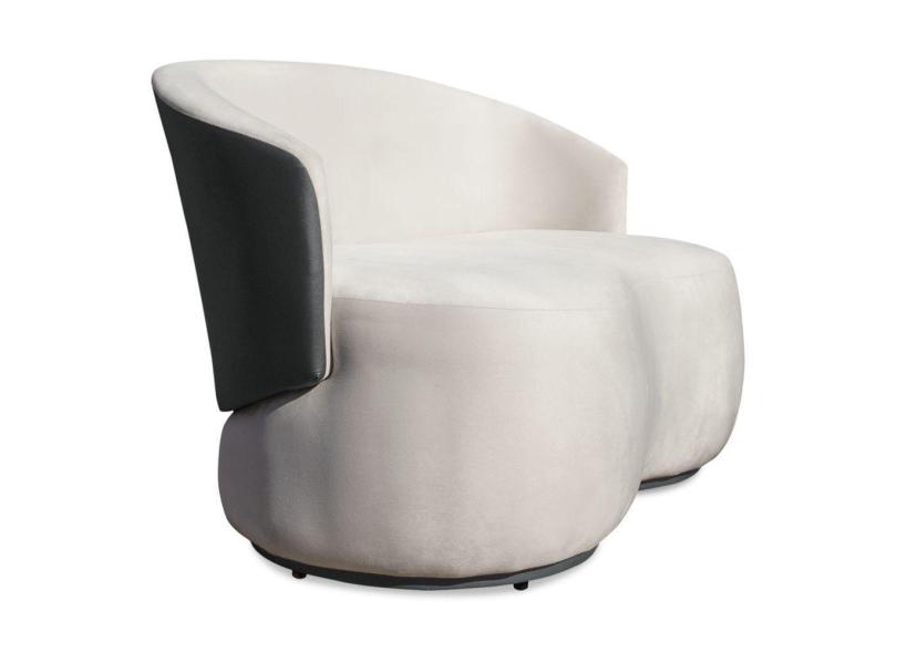Sofá Namoradeira 2 Lugares Decorativa Lara Veludo Bege/PU Cinza - Montanaris Decor