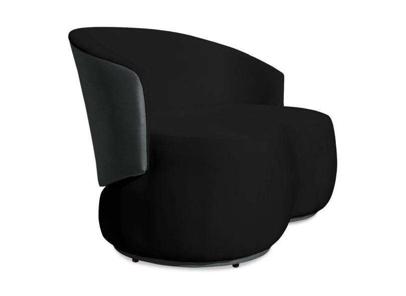 Sofá Namoradeira 2 Lugares Decorativa Lara Veludo Preto/PU Cinza - Montanaris Decor