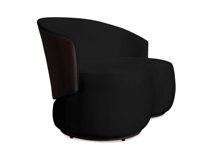 Sofá Namoradeira 2 Lugares Decorativa Lara Veludo Preto/PU Marrom - Montanaris Decor