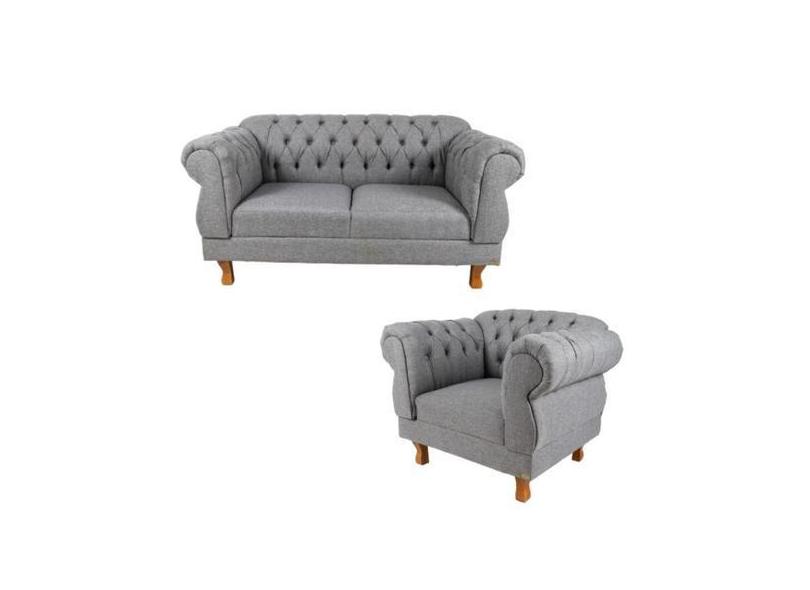 Sofá Namoradeira 2 Lugares Elisabeth Capitonê + 1 Poltrona Eisabeth Li