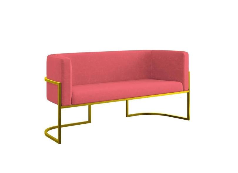 Sofá Namoradeira 2 Lugares Moderna Base Metal Gold Balaqui Rosa