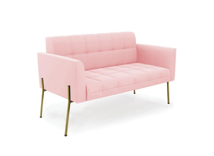 Sofá Namoradeira 2 Lugares Pé De Ferro Dourado Elisa Suede D03 - D'rossi Cor Rosa Bebê