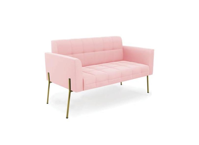 Sofá Namoradeira 2 Lugares Pé de Ferro Dourado Elisa Suede Rosa Bebê D03 - D'Rossi
