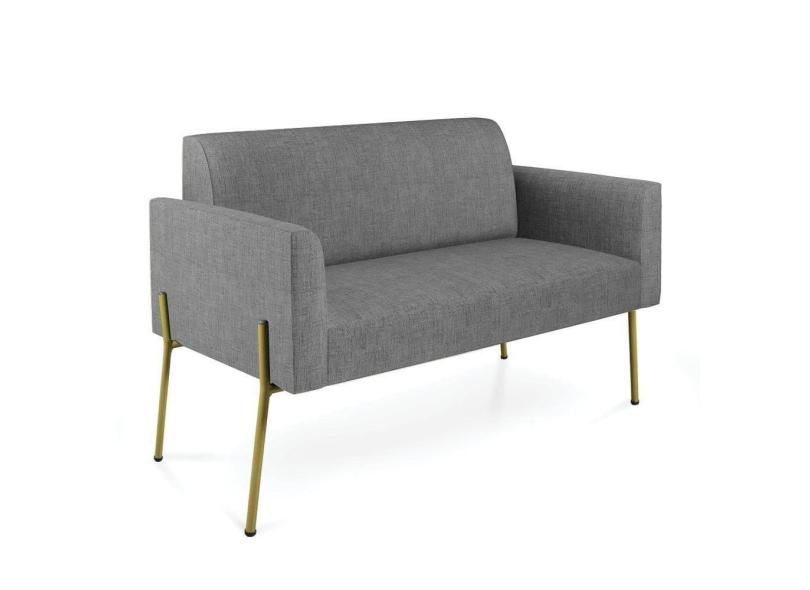 Sofá Namoradeira 2 Lugares Pé De Ferro Dourado Marisa Linho Grafite D03