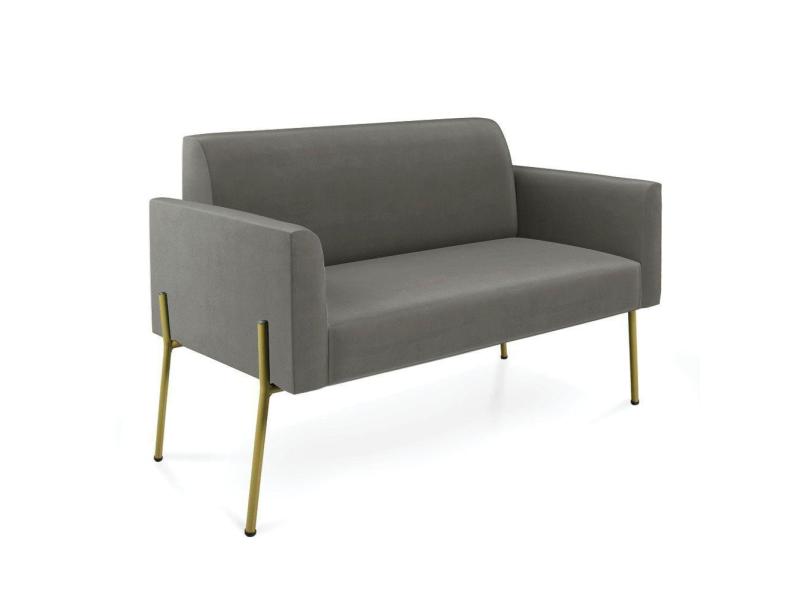 Sofá Namoradeira 2 Lugares Pé de Ferro Dourado Marisa Suede Grafite D03 - D`Rossi