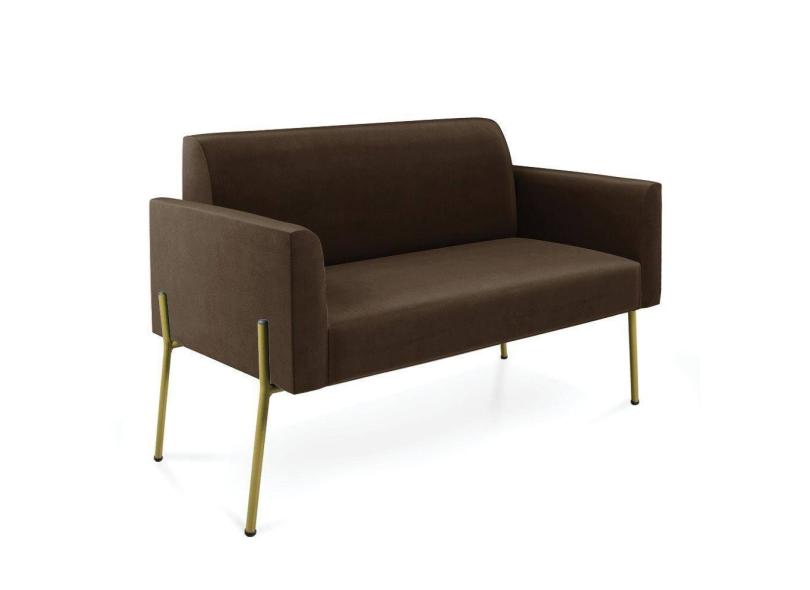Sofá Namoradeira 2 Lugares Pé de Ferro Dourado Marisa Suede Marrom D03 - D`Rossi