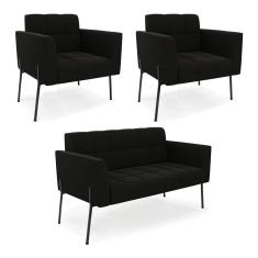 Sofá Namoradeira 2 Lugares Pé de Ferro Dourado Stella Suede Preto D03 - D'Rossi