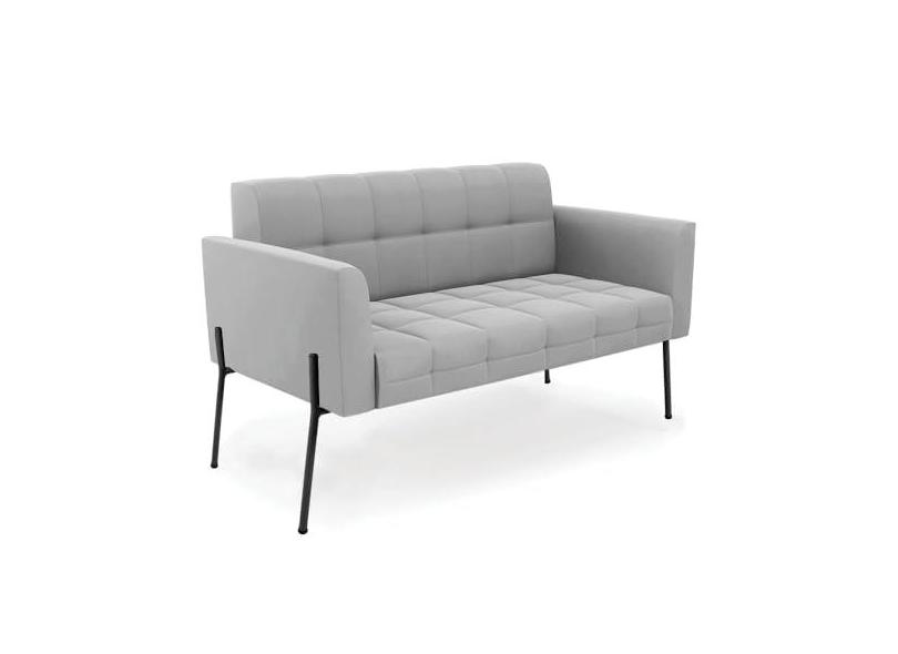 Sofá Namoradeira 2 Lugares Pé de Ferro Preto Elisa Suede Cinza D03 - D'Rossi