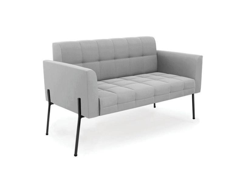 Sofá Namoradeira 2 Lugares Pé De Ferro Preto Elisa Suede D03 - D'rossi Cor Cinza