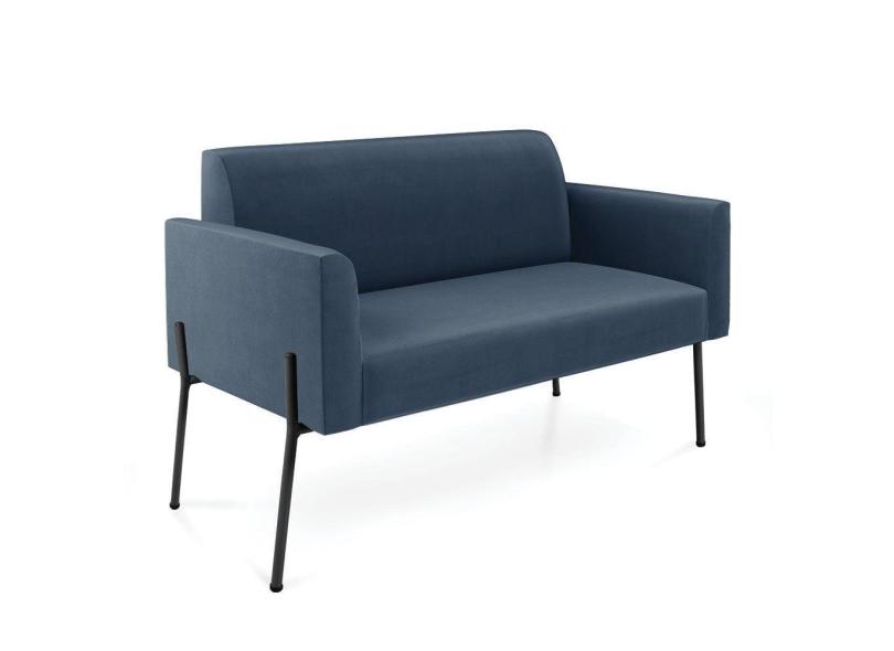 Sofá Namoradeira 2 Lugares Pé De Ferro Preto Marisa Suede Azul Marinho D03 - D'rossi