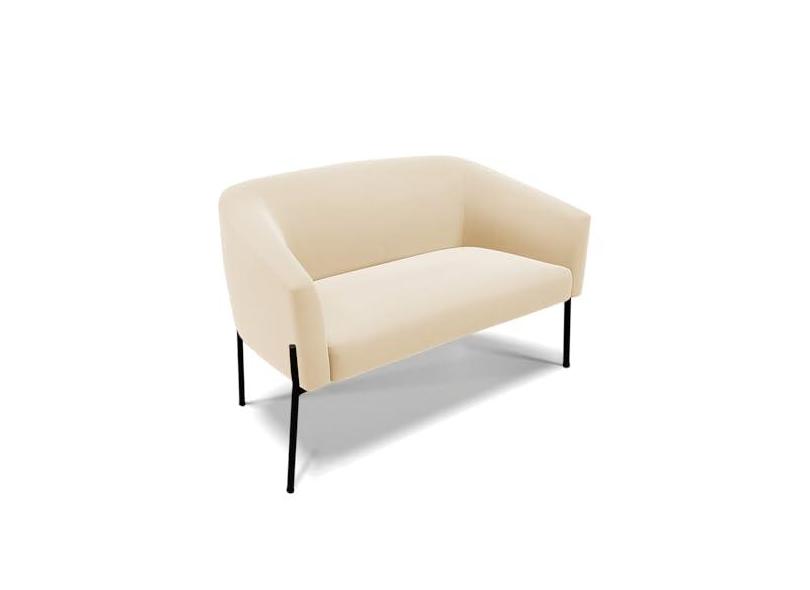 Sofá Namoradeira 2 Lugares Pé de Ferro Preto Stella Suede Bege D03 - D'Rossi