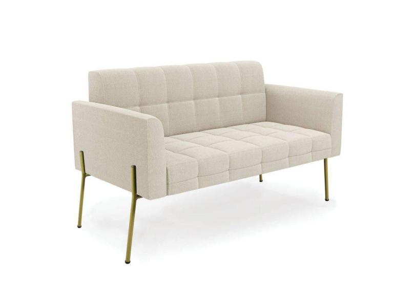 Sofá Namoradeira 2 Lugares Pé Ferro Dourado Elisa Bouclê D03 - D`rossi Cor Off White