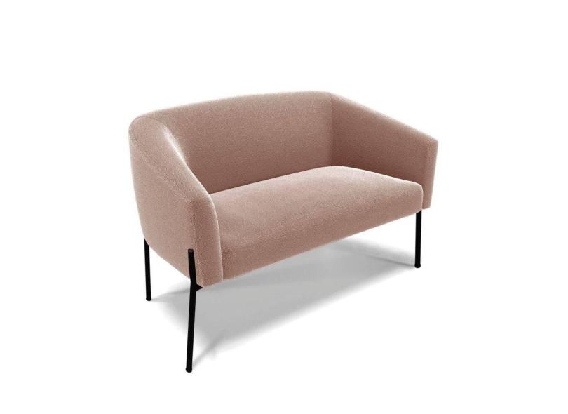Sofá Namoradeira 2 Lugares Pé Ferro Preto Stella Bouclê Rosê D03 - D`rossi