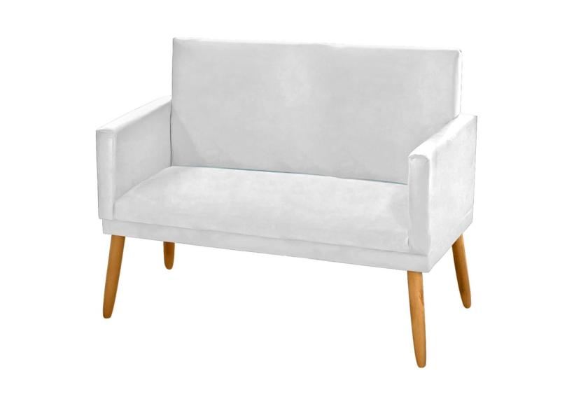 Sofá Namoradeira 2 Lugares Pés Retrô Tecido Sintético Branco