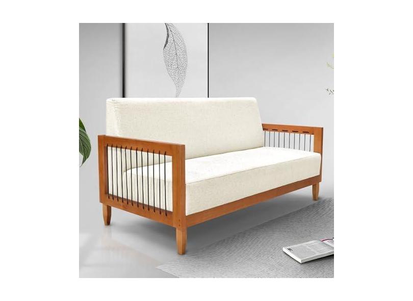 Sofá Namoradeira 2 Lugares Sala de Estar Pés Madeira Maciça Corda Náutica Preta 160cm Manila Linho Off White Rústico G63 - Gran Belo
