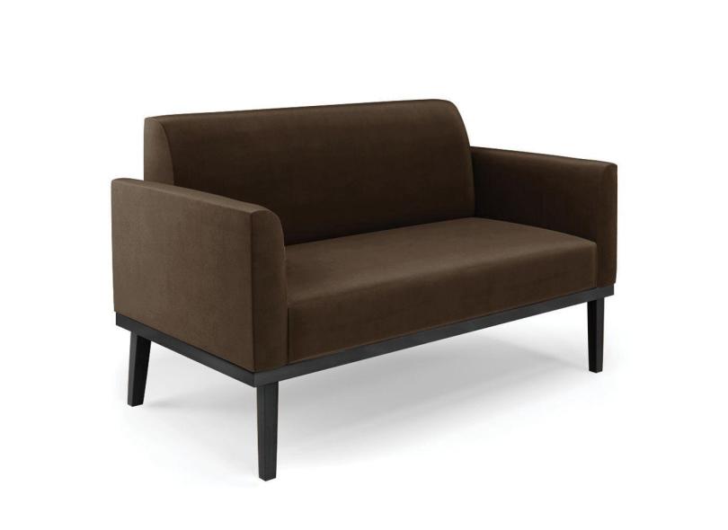 Sofá Namoradeira Base Madeira Preto Maressa Suede Marrom