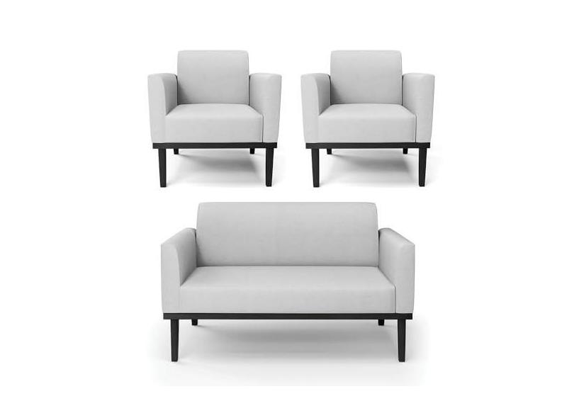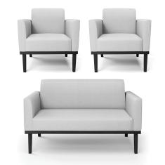 Sofá Namoradeira com 2 Poltronas Base de Madeira Fixa Preto Marisa Linho Cinza A05 D03 - D'Rossi