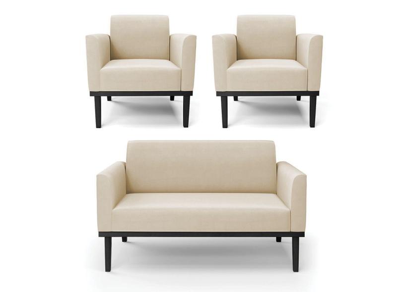 Sofá Namoradeira Com 2 Poltronas Base De Madeira Fixa Preto Marisa Suede Bege D03 - D'Rossi